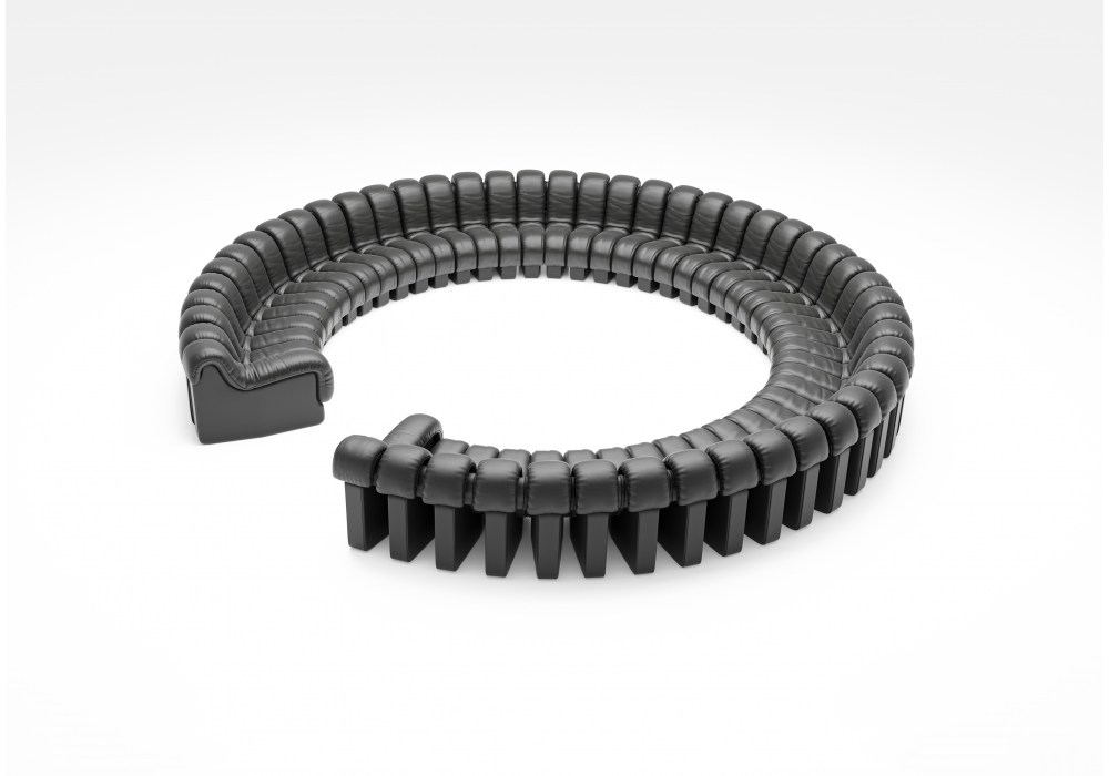 DS-600 von de Sede Design Team für De Sede entworfen, ist ein modulares Sofa, das aus einzelnen Elementen aus L-förmigem Hartschaum besteht, die mit einem federgefütterten, mit Leder überzogenen Kissen bedeckt sind. Die Elemente sind mit einem Push-Fit-Reißverschluss und einer Leder-Reißverschluss-Konstruktion verbunden. Bezug aus Leder oder Stoff in verschiedenen Ausführungen.