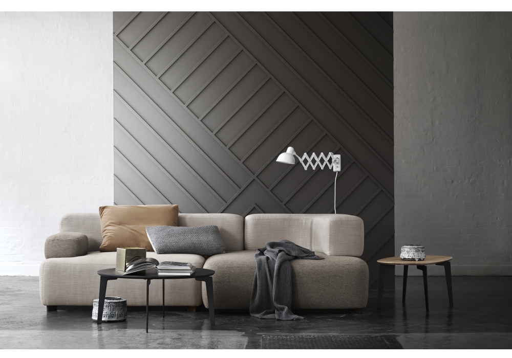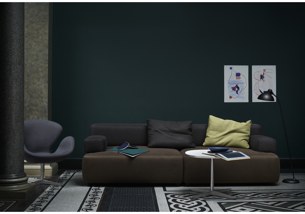 Alphabet™ Sofa von Piero Lissoni für Fritz Hansen entworfen, ist ein modulares Sofa mit Stoffbezug. Das von Lego-Bausteinen inspirierte Design besteht aus modularen Elementen, die sich in unendlich vielen Kombinationen kombinieren lassen.