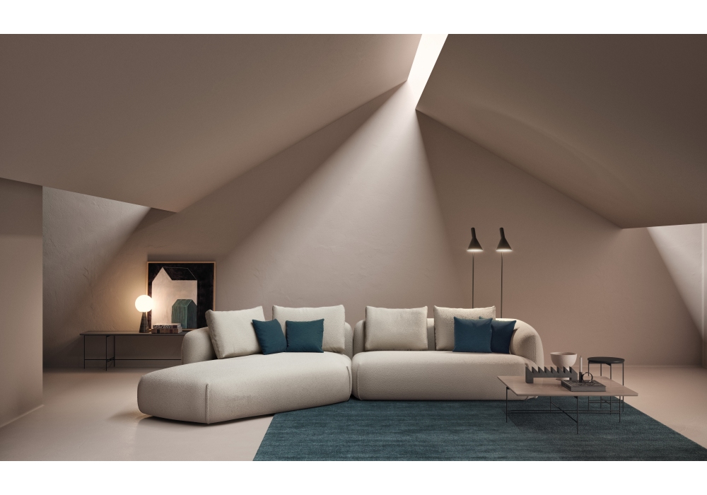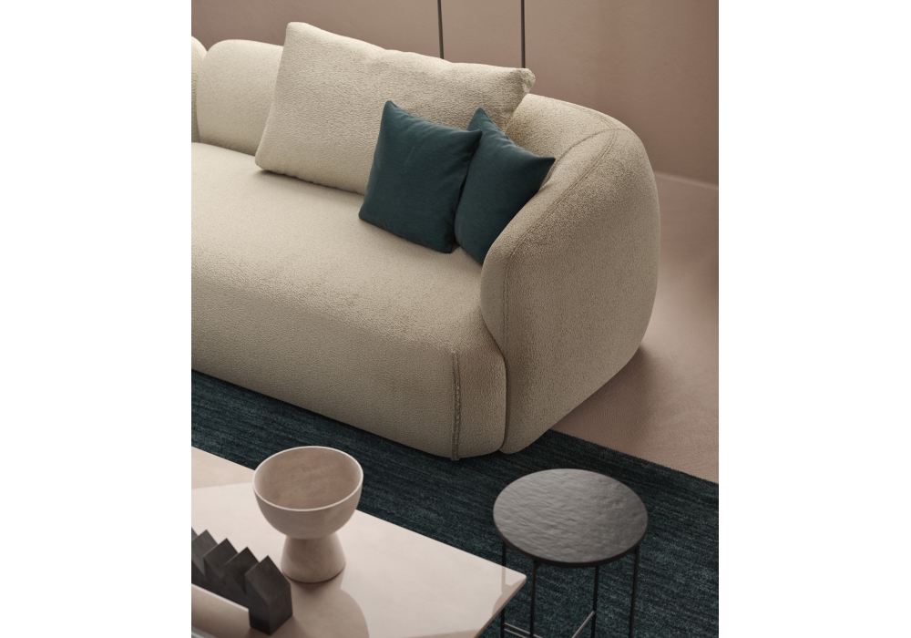 Aland, von Enrico Cesana für Marac entworfen, ist ein modulares Sofa mit Struktur aus Tannenholz (Picea Abies) und Sperrholz, mit elastischen Gurten. Polsterung in verschiedenen Ausführungen, nur in Stoff, nicht abnehmbar.
