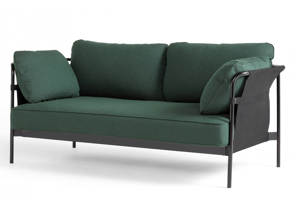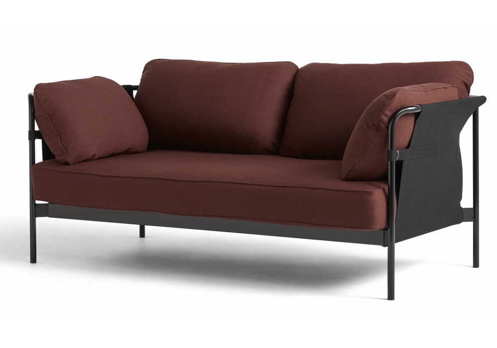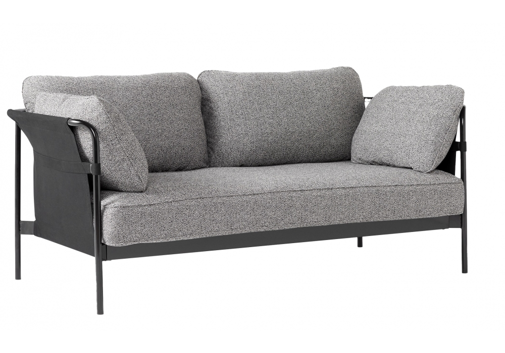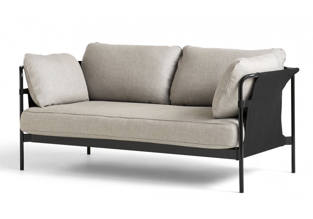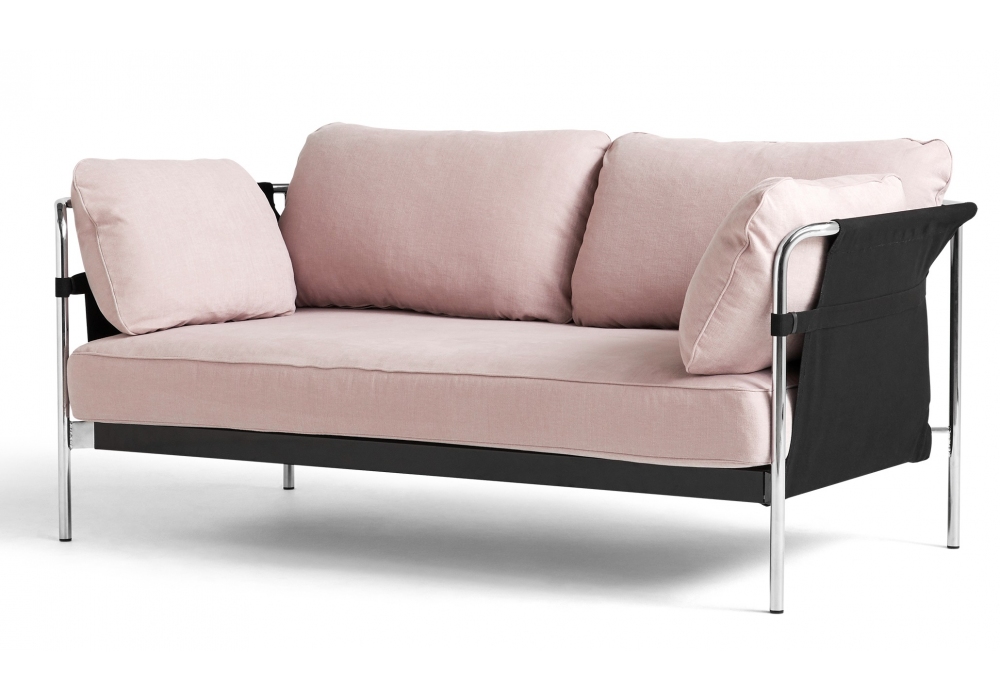 Can 2 Seater von Ronan & Erwan Bouroullec für Hay entworfen, ist ein Zweisitzer-Sofa mit Struktur aus verchromtem oder schwarz pulverbeschichtetem Stahl, äußerem Segeltuch in Natur oder Schwarz und Polsterung aus Leder oder Stoff. Verfügabar in verschiedenen Polsterungen.