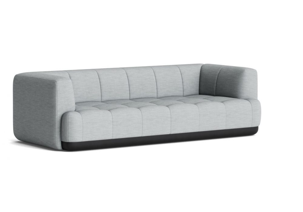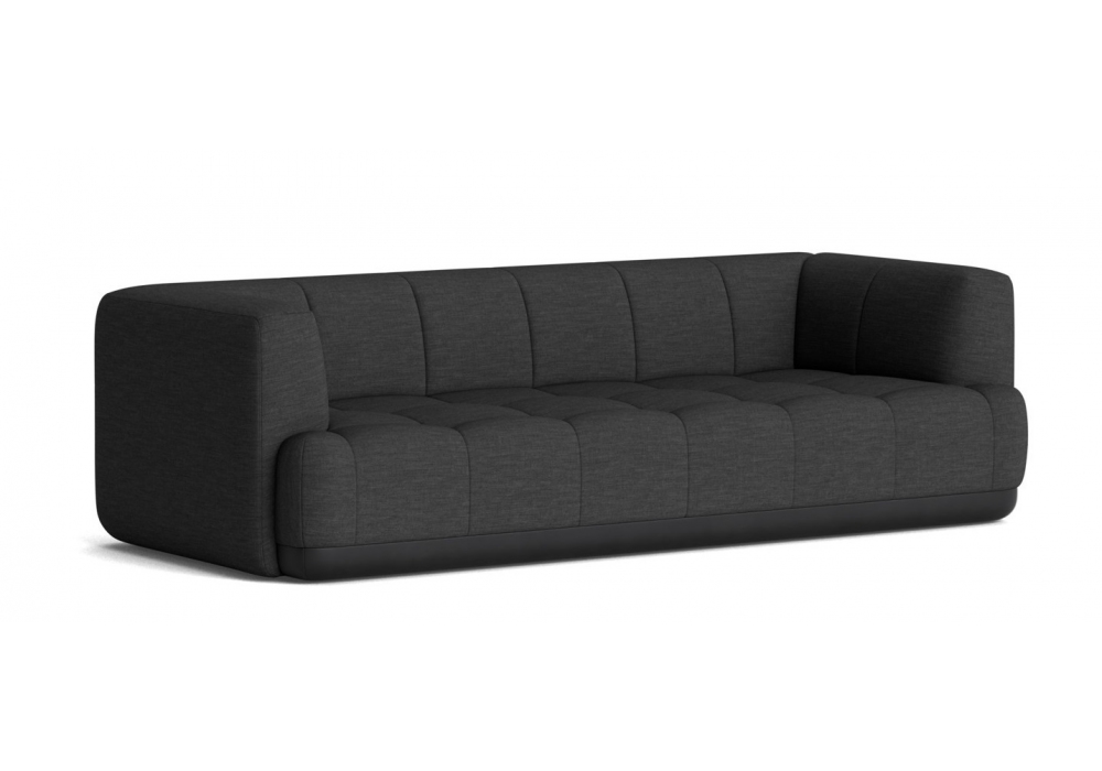 Quilton von Doshi Levien für Hay entworfen, ist ein modulares Sofa mit Bezug aus Stoff oder Leder und Beinen aus schwarz gebeizter massiver Buche. Auch in der Version mit schwarzem Kontrastsockel und in verschiedenen Modellen und Polsterungen erhältlich.