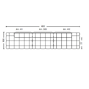 | Abmessungen | 214 x 72 x H 109 cm; 248 x 109 x H 72 cm; 426 x 109 x H 72 cm; 483 x 109 x H 72 cm; 487.5 x 109 x H 72 cm; 357 x 143 x H 72 cm; 357.5 x 143 x H 72 cm. |