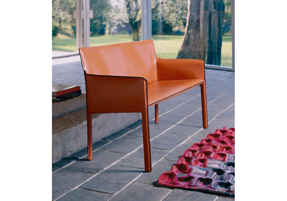 Pasqualina von RedCreative für Enrico Pellizzoni entworfen, ist ein Sofa aus Stahlrohr, das vollständig mit Leder bezogen ist und in verschiedenen Farben erhältlich ist. Untersitz aus Blech mit schwarzem technischem Stoff bezogen. Auch das Sofa Pasqualina ist in zwei verschiedenen Größen erhältlich.