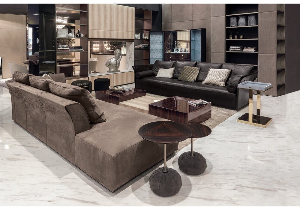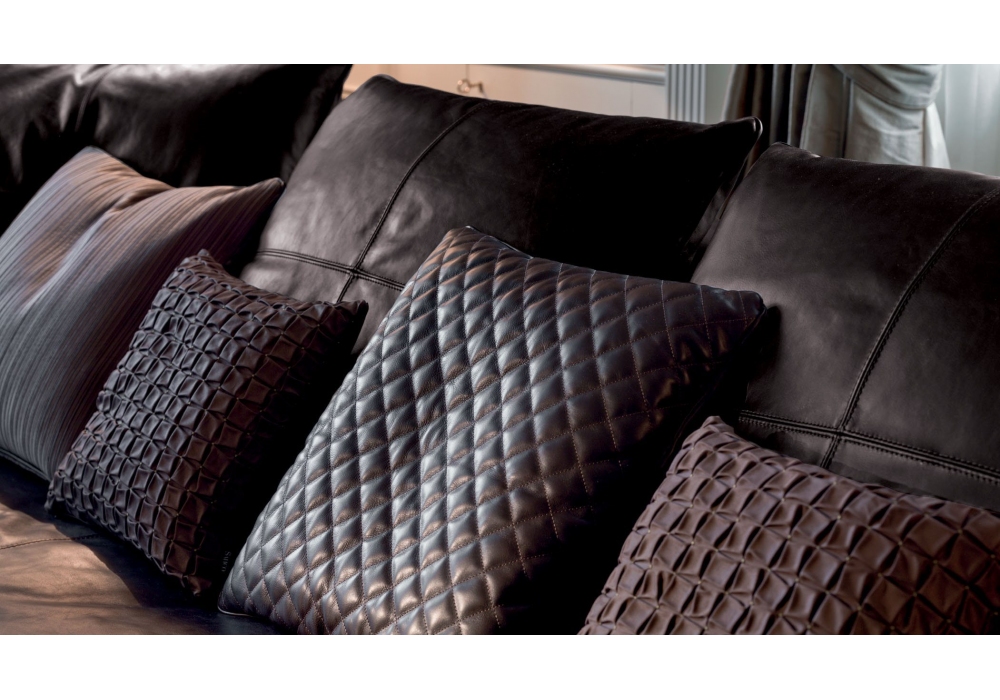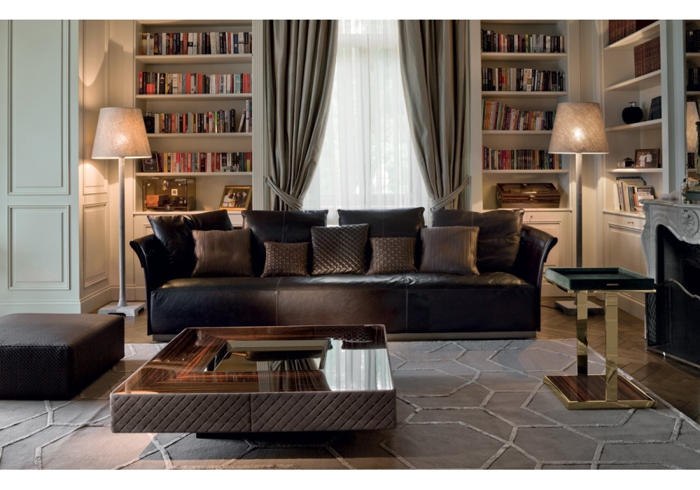 Charme von Giuseppe Viganò für Longhi entworfen, ist ein modulares Sofa mit Basis aus bronzefarbenem oder schwarz lackiertem Metall und Struktur aus Polyurethanschaum mit Lederbezug. Passende Knöpfe oder Swarovski. Verfügbar in mehreren Zusammensetzungen.