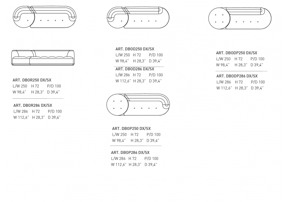 | Abmessungen | 250 x 100 x H 72 cm (Mod1); 286 x 100 x H 72 cm (Mod1); 250 x 100 x H 72 cm (Mod2); 286 x 100 x H 72 cm (Mod2); 250 x 100 x H 72 cm (Mod3); 286 x 100 x H 72 cm (Mod3); 250 x 100 x H 72 cm (Mod4); 286 x 100 x H 72 cm (Mod4). |