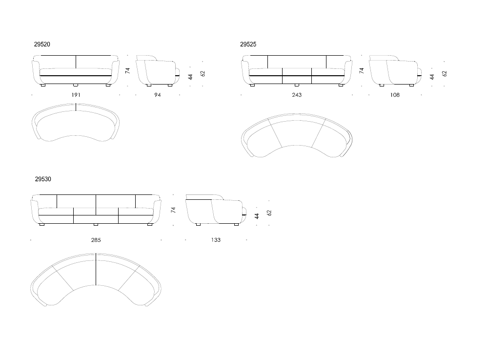 | Abmessungen | - 191 x 94 x H 74 cm; - 243 x 108 x H 74 cm; - 285 x 133 x H 74 cm. |
