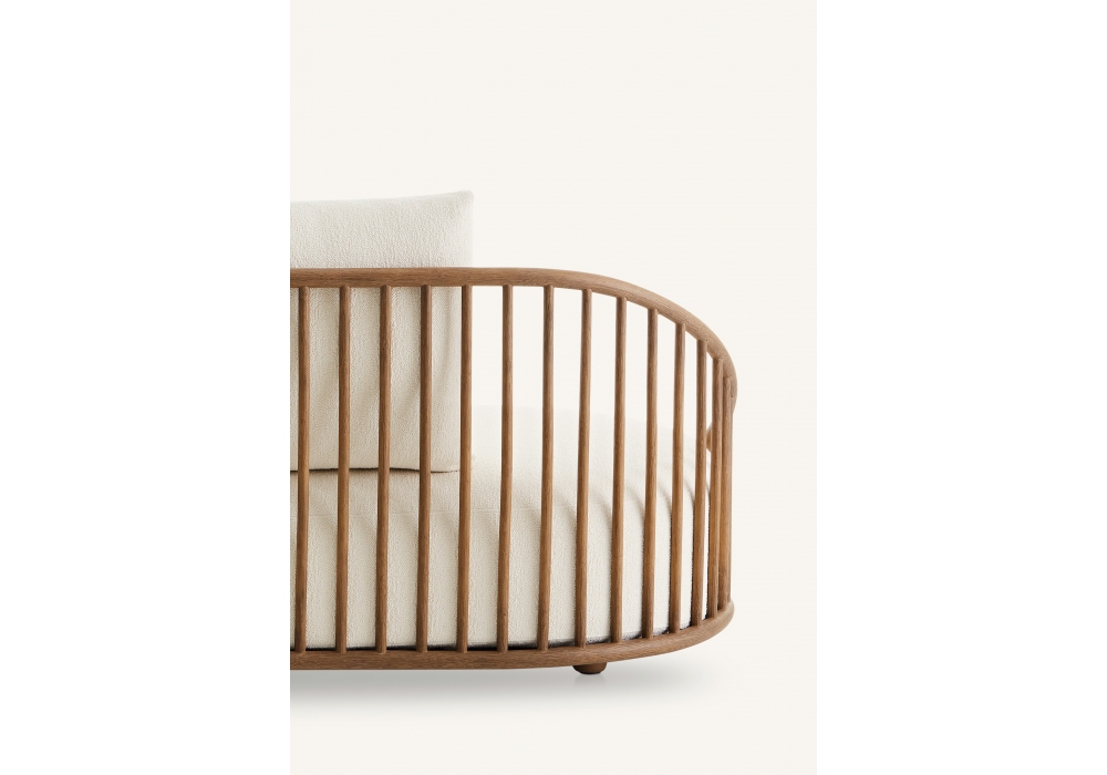 Cask, von NORM Architects für Expormim entworfen, ist ein Sofa mit natürlicher Rattanstruktur, das mit einer wasserbasierten Dreiphasenbeschichtung versehen ist, die dank UV-Filtern sehr widerstandsfähig gegen Sonneneinstrahlung ist. Erhältlich in verschiedenen Ausführungen und zwei Modellen.