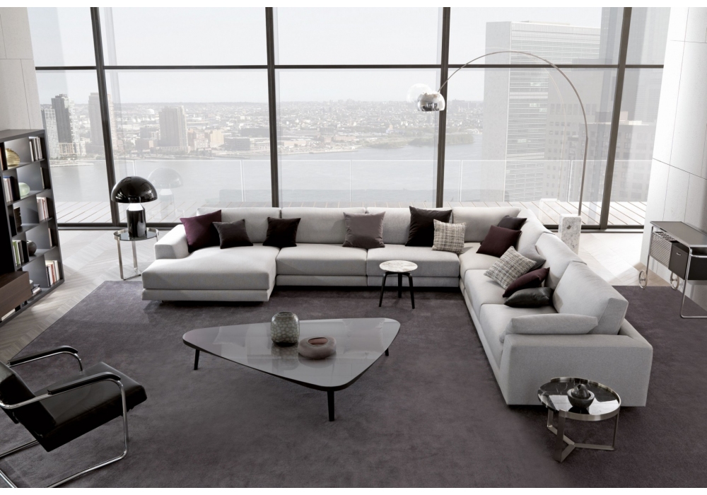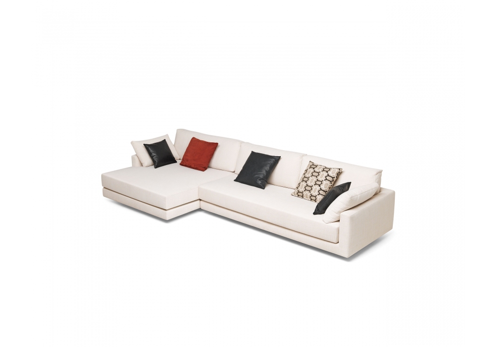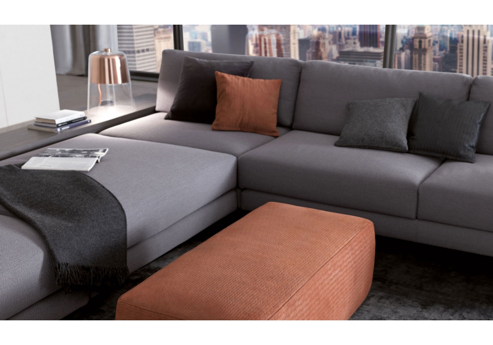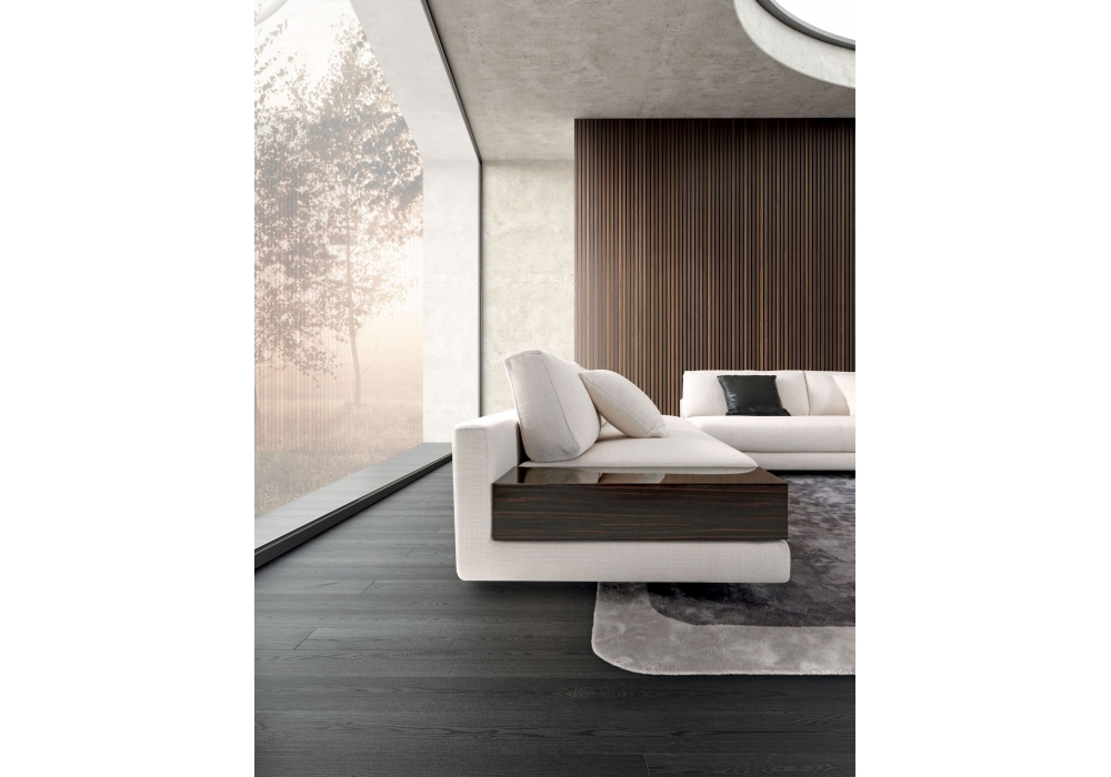 Argo von Mauro Lipparini für MisuraEmme entworfen, ist ein Sofa, das in einer festen und modularen Version erhältlich ist und sich durch mehrere Kompositionsmöglichkeiten auszeichnet. Es hat eine Sperrholzstruktur und umfasst zentrale Elemente ohne Armlehne, Eck- und Endelemente mit zwei verschiedenen Arten von Armlehnen, Puff und Chaiselongue. Alle Elemente sind in zwei Breiten erhältlich und frei miteinander kombinierbar. Das Projekt umfasst kleine Tische in der Mitte des Raums und Bücherregalelemente, die neben oder hinter den Sofas platziert werden können, die das System individuell gestalten und das Wohnzimmer hervorheben.