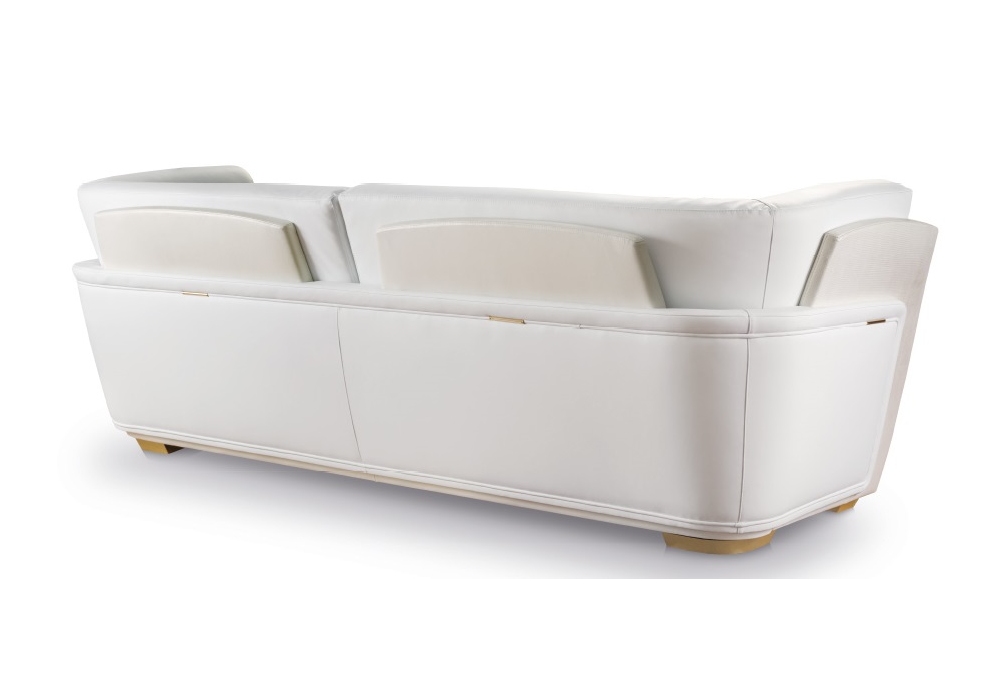 Blanche von Andrea Bonini für Turri entworfen, ist ein Sofa mit Struktur aus Sperrholz und Massivholz, gepolstert mit Polyurethanschaum mit mehreren Dichten und Bezug aus verschiedenen Stoffen oder Ledern. Füße und Details aus Metall in hellgoldenem Finish. Verfügbar in mehreren Abmessungen.