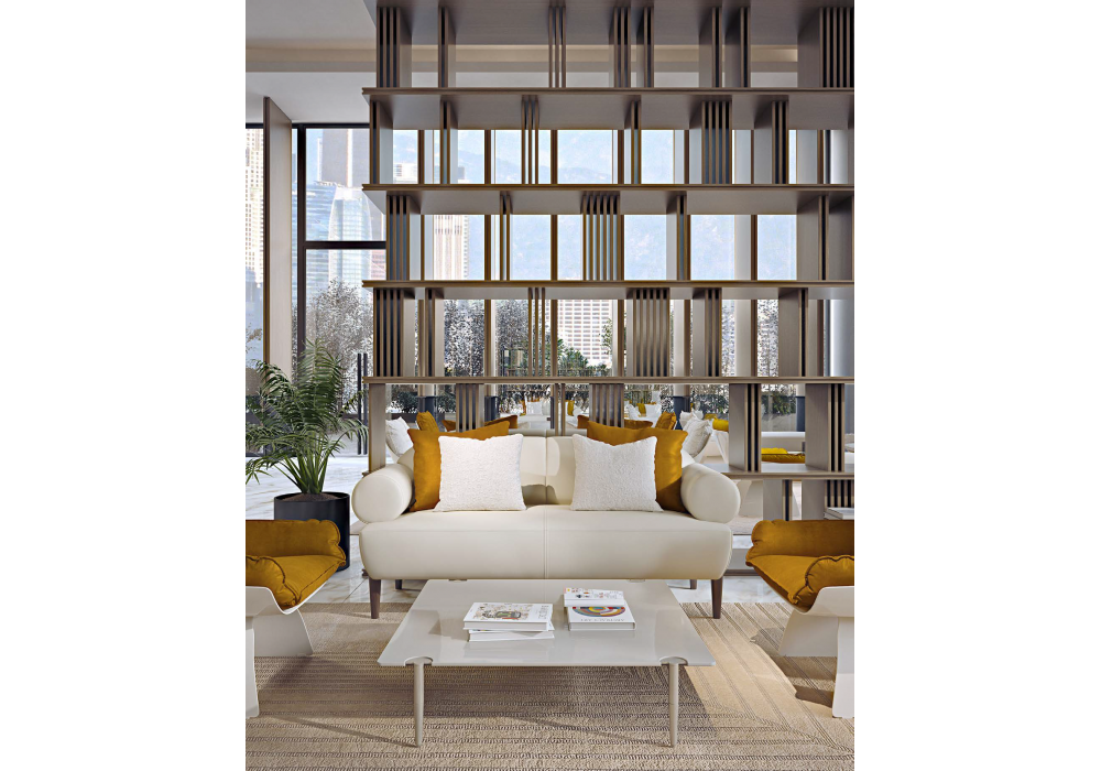 Silhouette von Gensler für Tutti entworfen, ist ein Sofa mit Struktur aus Sperrholz und Massivholz mit Polsterung aus verschiedenen Stoffen oder Ledern. Beine aus eukalyptusfarbenem Massivholz.