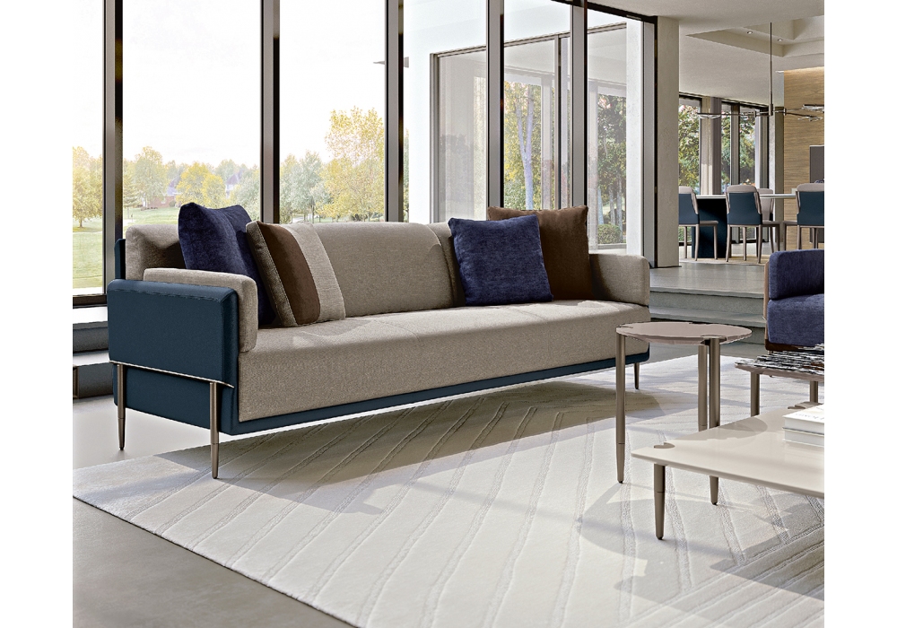 Zero von Andrea Bonini für Turri entworfen, ist ein Zwei- oder Dreisitzer-Sofa mit einer Struktur aus Massivholz und Sperrholz, die mit Polyurethanschaum mit mehreren Dichten gepolstert ist. Struktur- und Kissenbezug in verschiedenen Ledern oder Stoffen. Beine und Metalldetails in mattem Finish.
