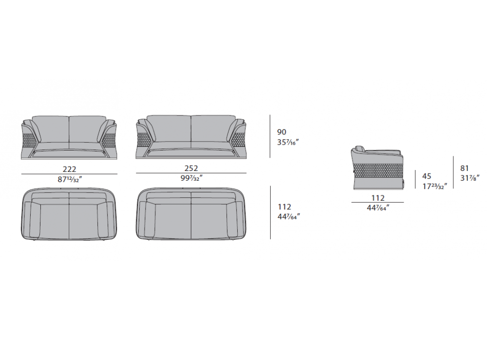 | Abmessungen | 222 x 112 x H 90 cm; 252 x 112 x H 90 cm. |