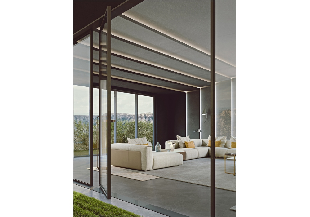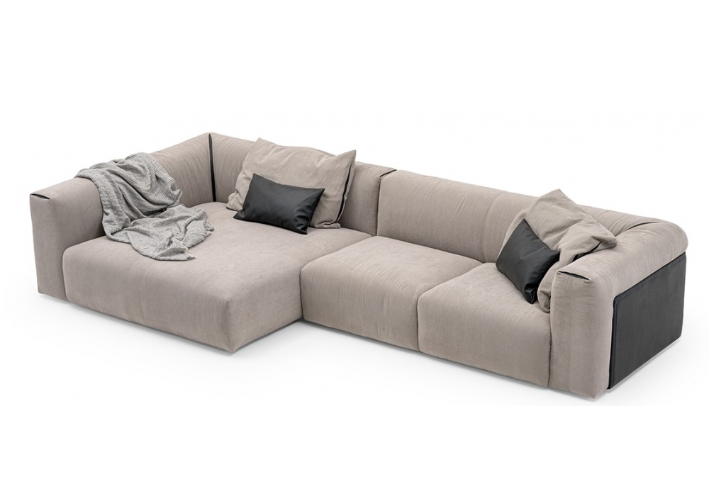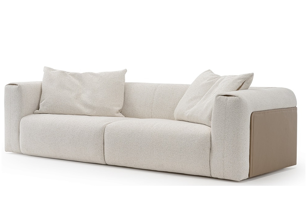 Soul, von Giuseppe Viganò für Tutti entworfen, ist ein Sofa mit einer Struktur aus Sperrholz und Massivholz, die mit Polyurethanschaum mit mehreren Dichten gepolstert ist. Struktur- und Kissenbezug in verschiedenen Ledern oder Stoffen. Verfügbar in mehreren Zusammensetzungen.
