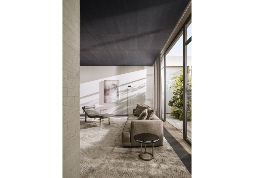 Augusto von Vincent Van Duysen für Molteni&C entworfen, ist ein Sofa mit Gestell aus lackiertem Aluminium, Stoff- oder Lederbezug und Grosgrain-Einsätzen aus Polyester-Baumwollband. Strukturpolsterung aus Polyurethanschaum hoher Kapazität mit variabler Dichte. Verfügbar in mehreren Ausführungen und Abmessungen.
