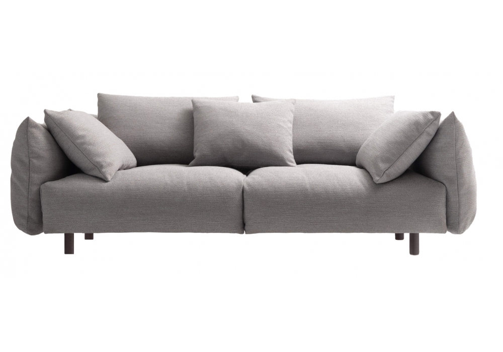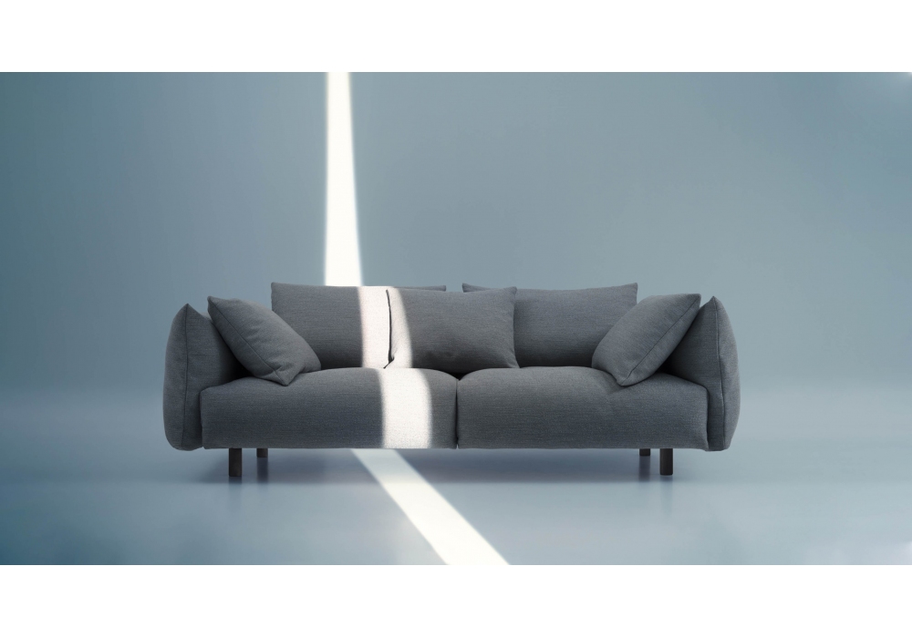 Soffio, von Norm Architects für Lema entworfen, ist ein Sofa mit einer Struktur aus FSC®-Sperrholz, das die weichen Kissen trägt, die mit einer Faser aus recyceltem Material gepolstert sind. Erhältlich in verschiedenen Ausführungen und in zwei Größen.