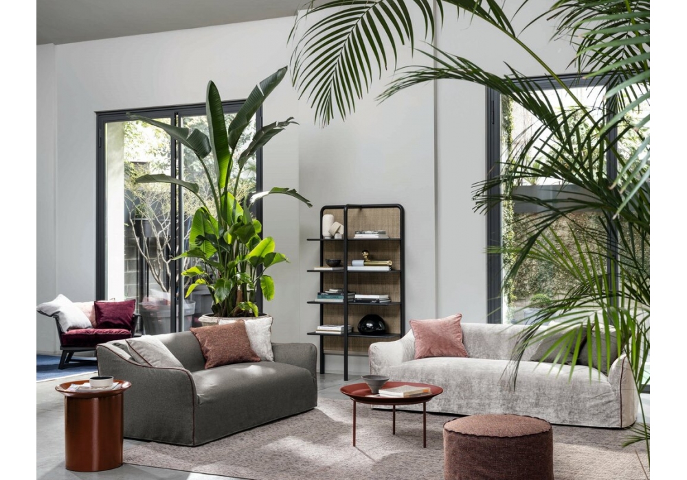 Saia von David Lopez Quincoces für Gervasoni entworfen, ist ein Sofa mit Polyurethan-Polsterung in verschiedenen Dichten und Taschenfederkernsitz. Abnehmbare Bezug mit Paspelierung. Auf Anfrage lose Kissen oder Rollen aus gemischten Federn mit Paspelierung.