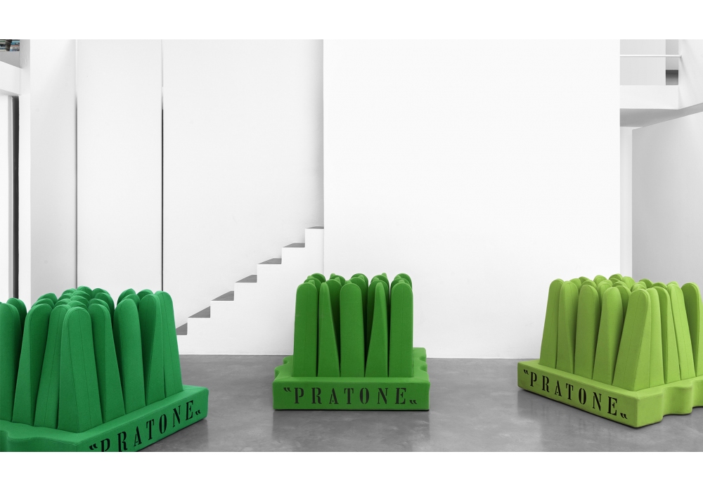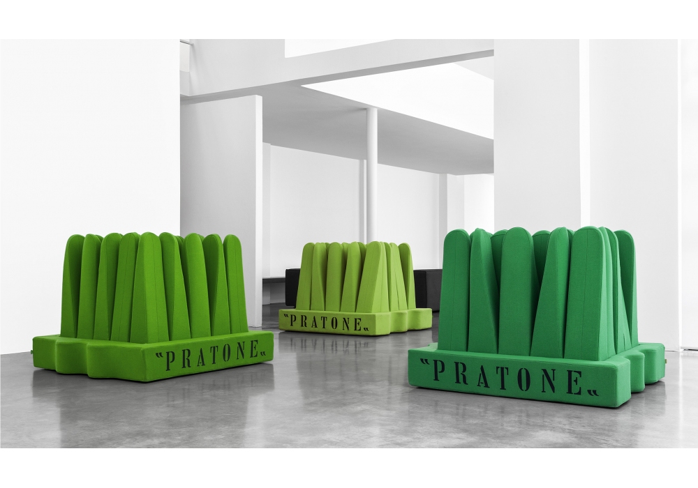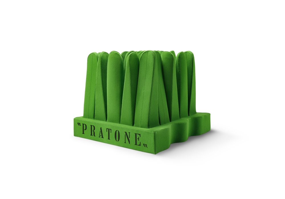Pratone Forever, entworfen von Giorgio Ceretti, Piero Derossi und Riccardo Rosso für Gufram, ist ein Sitz aus weichem Polyurethan, bezogen mit Bouclé-Wolle. Erhältlich in 3 Ausführungen.