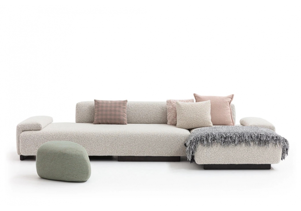 Mr Loveland, von Patricia Urquiola für Moroso entworfen, ist ein Sofa mit lackierten Eschenfüßen und Stoffbezug.