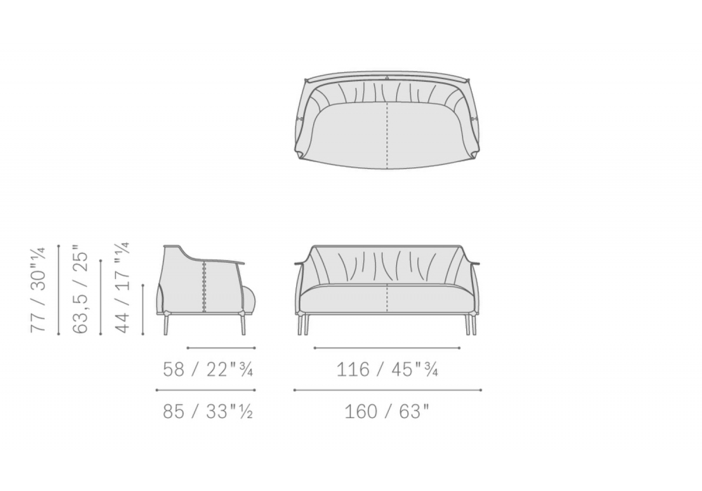 Archibald von Jean-Marie Massaud für Poltrona Frau entworfen, ist ein Sofa, erhältlich mit Polsterung aus Pelle Frau® oder Stoff. Füße aus Aluminium.