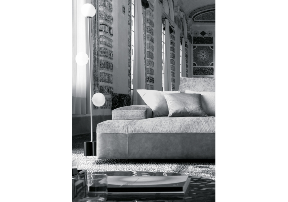 Glow In von Marc Sadler für Désirée entworfen, ist ein modulares Sofa mit einer Struktur aus Massivholz und Sperrholz mit Polsterung aus Polyurethan unterschiedlicher Dichte, Dacron und vollständig abnehmbarem Stoff- oder Lederbezug. Füße aus Polypropylen. Auf Anfrage auch in der zweifarbigen Variante erhältlich.