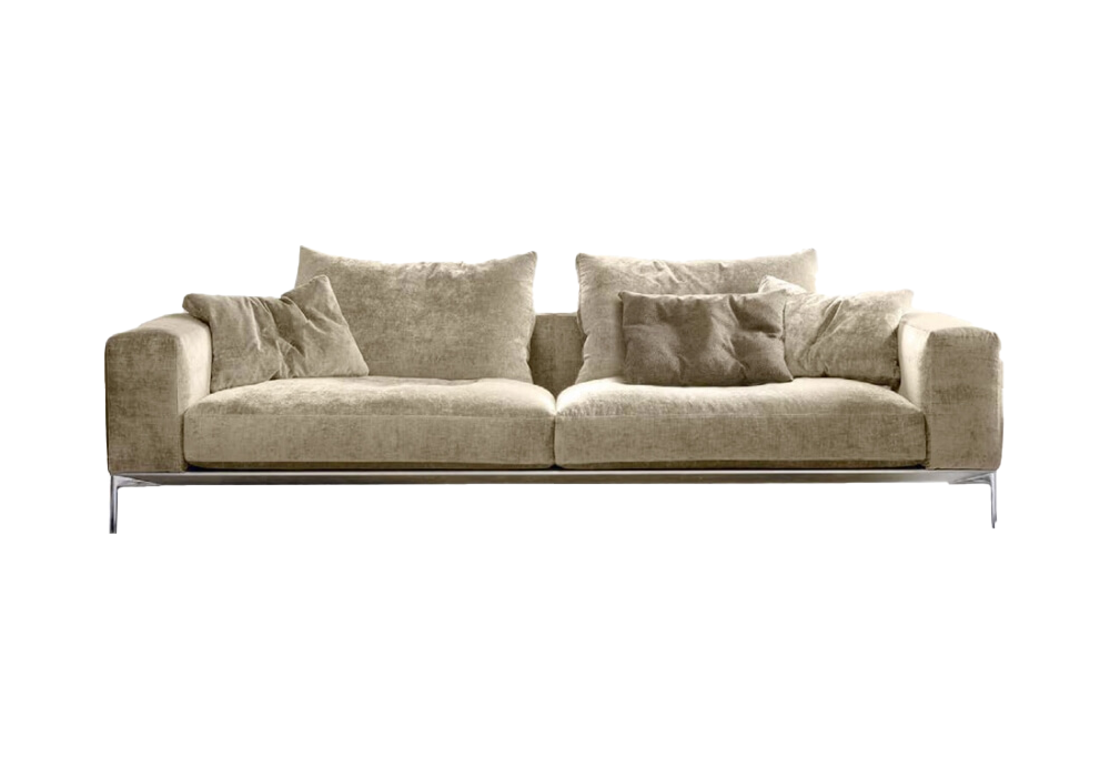 Savoye von Marc Sadler für Désirée entworfen, ist ein modulares Sofa mit einer Struktur aus Aluminium, Holz und Metall mit Polsterung aus Polyurethan unterschiedlicher Dichte und Federn aus federfestem Canvas. Die Polsterung besteht aus vollständig abnehmbarem Leder oder Stoff. Füße aus poliertem Aluminium.