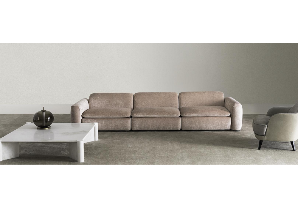Botero von Marco Boga für Casamilano entworfen, ist ein modulares Sofa mit einer Struktur aus massivem Tannen-, Pappel- und Birkensperrholz. Polsterung aus Polyurethanschaum in verschiedenen Dichten und mit Fasern überzogen. Füße aus ABS. Der Bezug ist abnehmbar und besteht aus verschiedenen Ledern oder Stoffen.