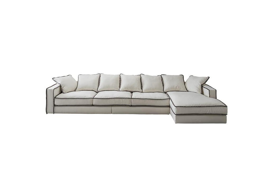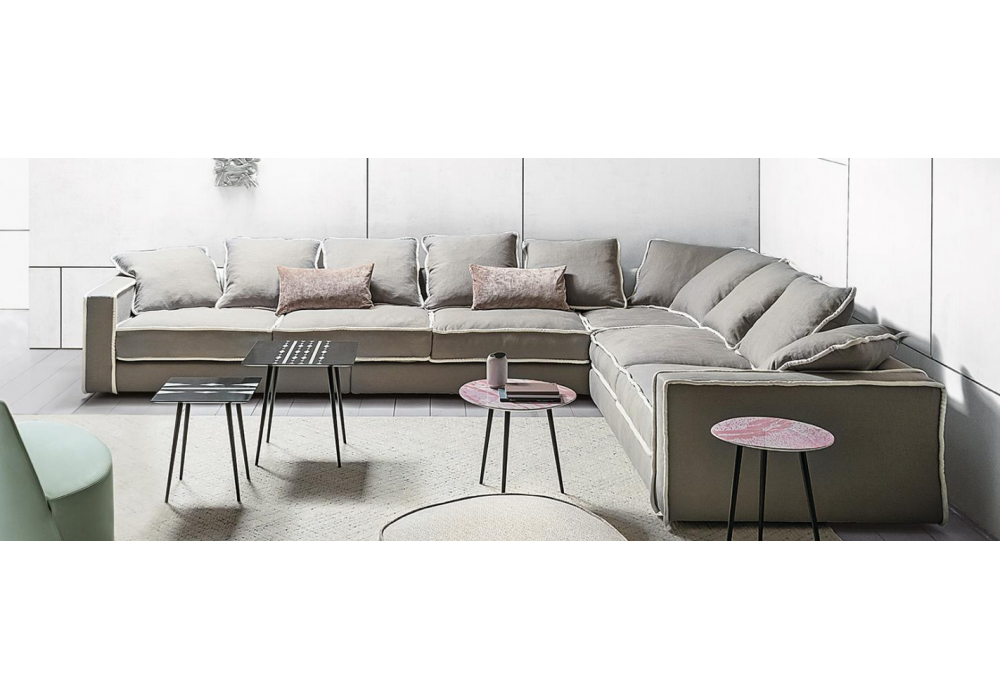 Pillopipe Evo von Paola Navone für Casamilano entworfen, ist ein modulares Sofa mit einer Struktur aus massiver Tanne, Pappelsperrholz und Spanplatten. Polsterung aus Polyurethan unterschiedlicher Dichte und Polsterung aus Stoff oder Leder.