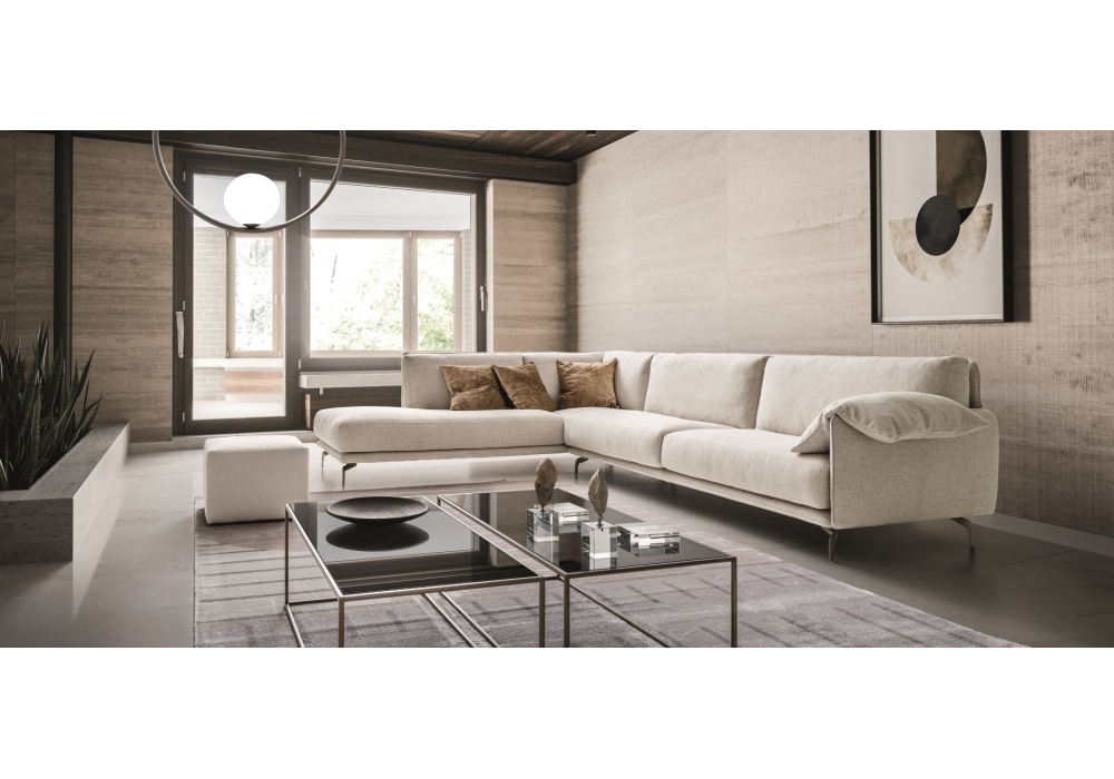 Krisby von Stefano Spessotto für Ditre Italia entworfen, ist ein Sofa, das sich durch Füße aus Metalllegierung und Stoff- oder Lederpolsterung auszeichnet. Erhältlich in verschiedenen Ausführungen und Konfigurationen.