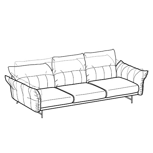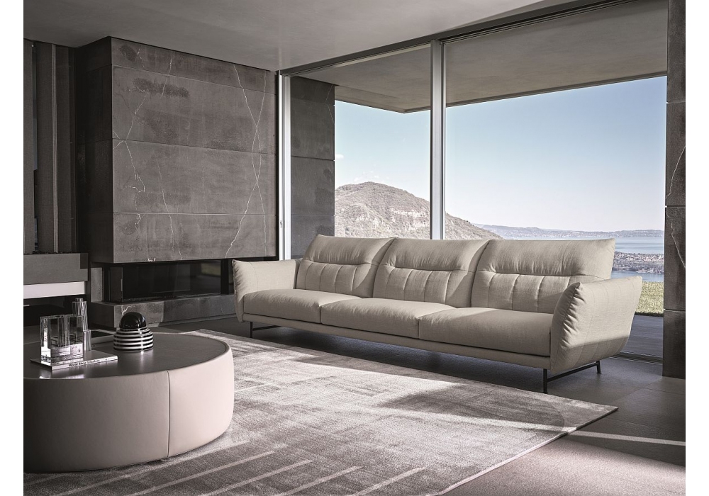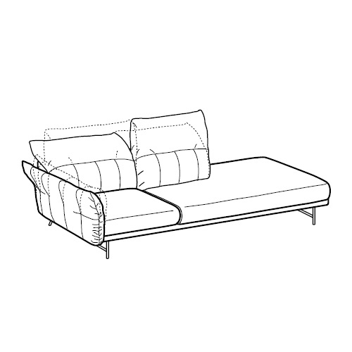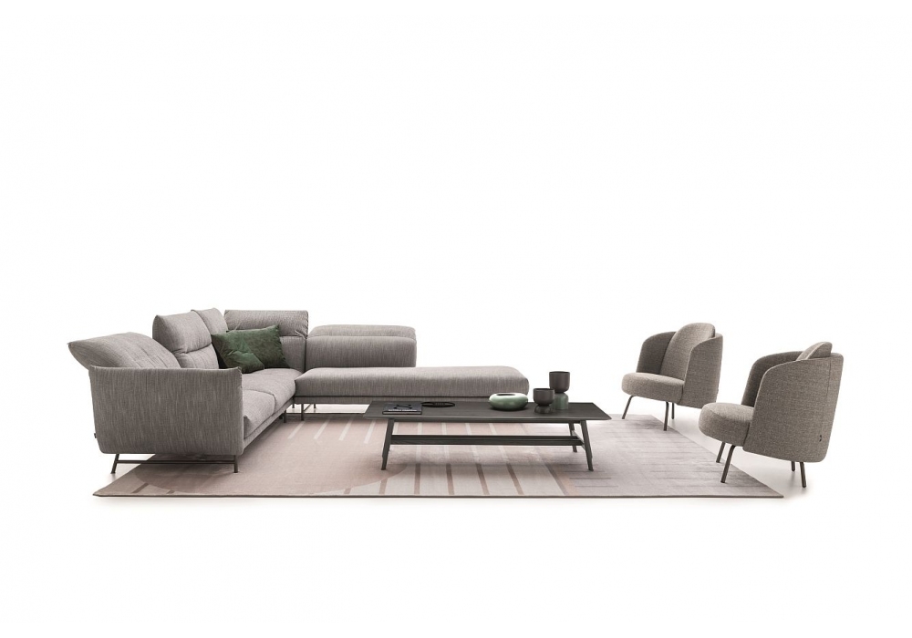 On Line von Anna von Schewen für Ditre Italia entworfen, ist ein Sofa, das sich durch einen festen Teil der Sitzfläche und den beweglichen Teil der Kissen auszeichnet. Verstellbare Rückenlehne und Armlehnen. Polsterung aus Stoff oder Leder. Erhältlich in verschiedenen Ausführungen und Konfigurationen.