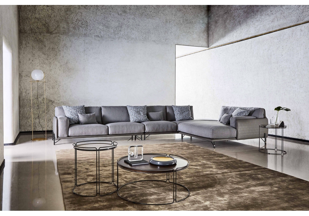 Kris von Stefano Spessotto und Lorella Agnoletto für Ditre Italia entworfen, ist ein Sofa mit Stoff- oder Lederbezug, erhältlich in verschiedenen Ausführungen und Konfigurationen.