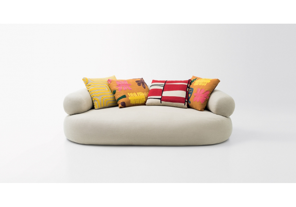 Noah, entworfen und hergestellt von CRS Paola Lenti, ist ein Sofa mit einer Rückenlehne, die aus einem einzigen beweglichen zylindrischen Element besteht. Sitzpolsterung aus recycelbarem expandiertem Polyethylen, gemischt mit der blauen Polyesterfaser Aerelle®, Oberschicht aus recycelbarem Polyester. Rückenlehnenpolsterung aus recycelbarem expandiertem Polyester, gemischt mit der blauen Polyesterfaser Aerelle®. Fester Innenbezug aus Baumwolle für den Sitz, aus schwarzem Polyesterstoff für die Rückenlehne, abnehmbarer Außenbezug aus Flanders-Leinen.
