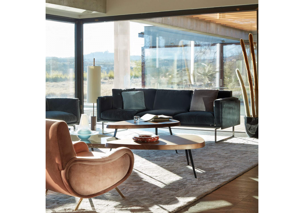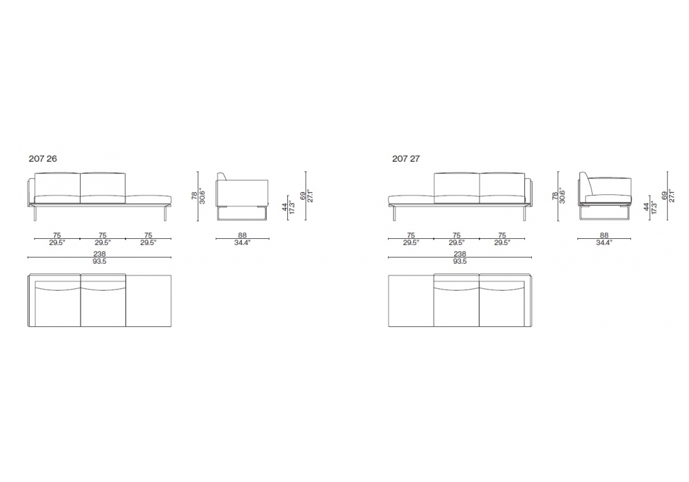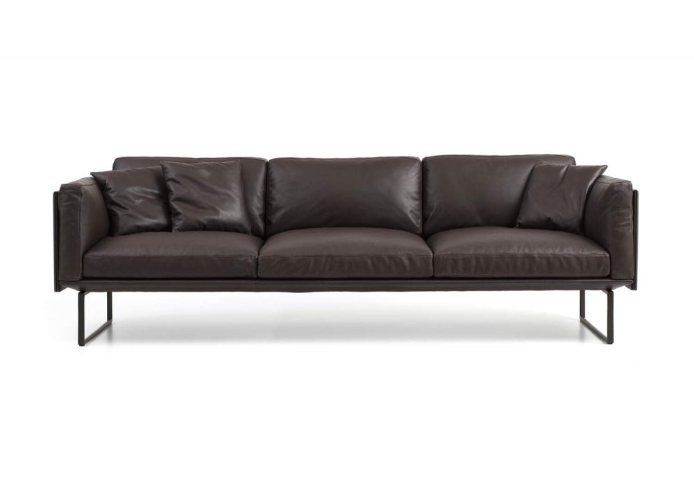 8 207 von Piero Lissoni für Cassina entworfen, ist ein Sofa mit gepolsterten Kissen, Metallgestell und Leder- oder Stoffbezug. Verfügbar in mehreren Ausführungen und Abmessungen.