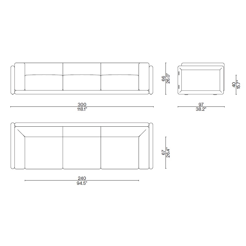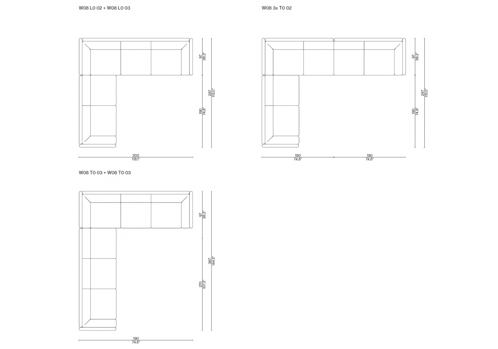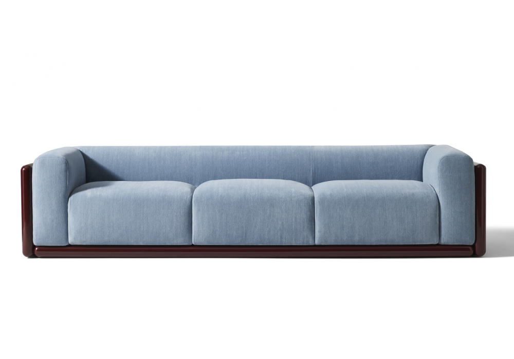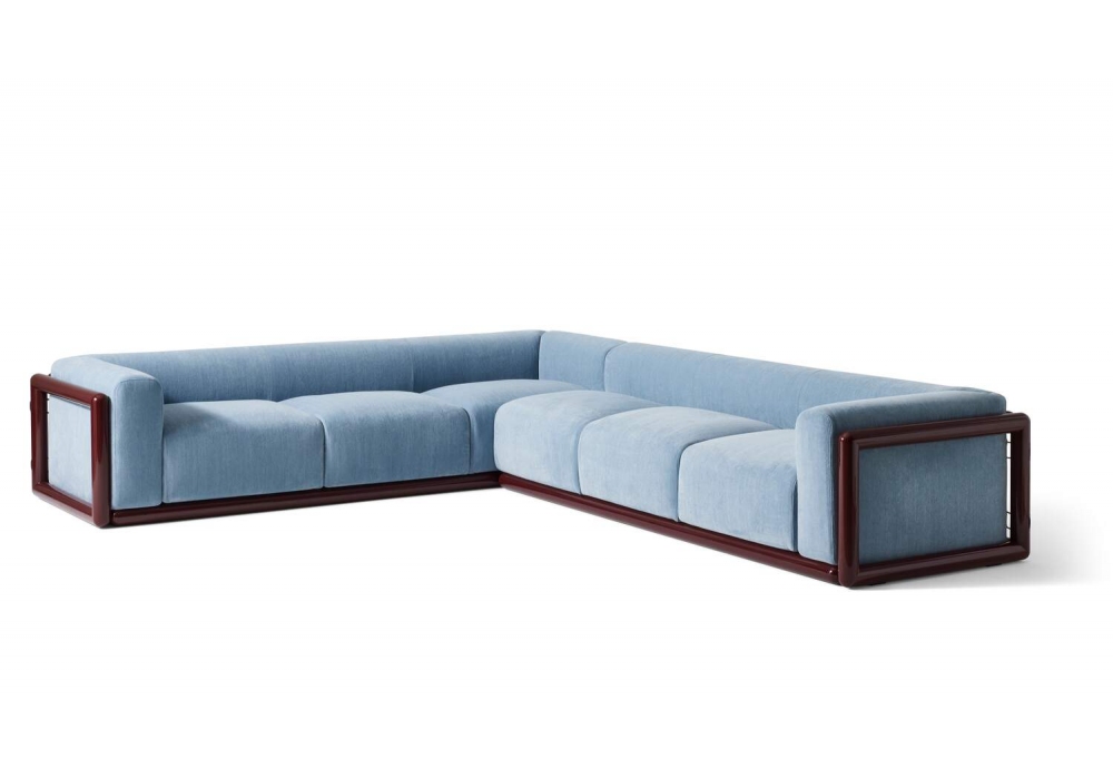 Cornaro W08 von Carlo Scarpa für Cassina entworfen, ist ein lineares oder modulares Sofa mit einer lackierten oder gebeizten Eschenstruktur und Stoffpolsterung. Verfügbar in mehreren Ausführungen.