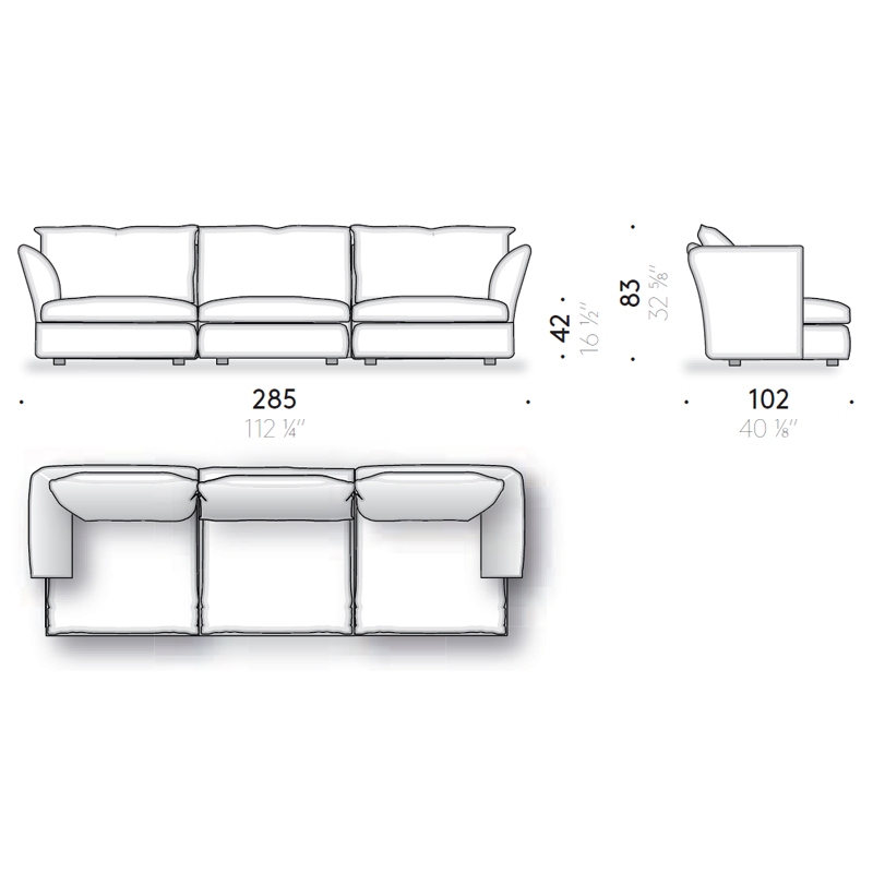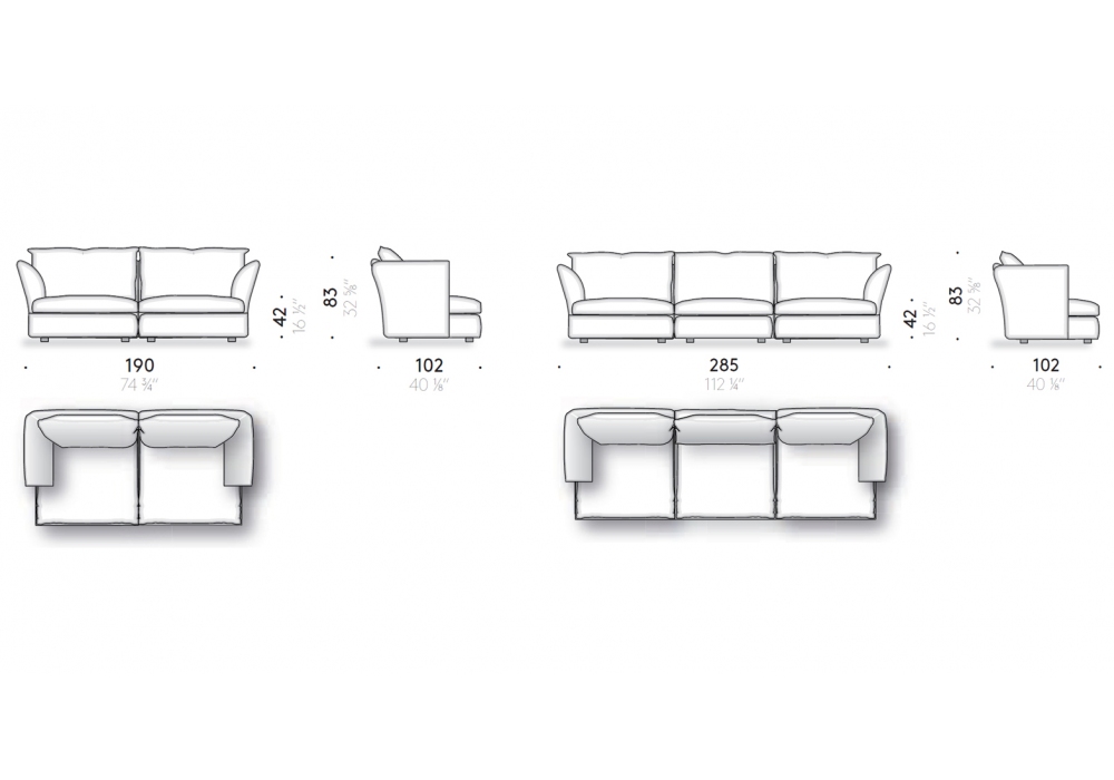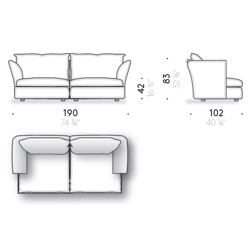 Pillow 20 von Vico Magistretti für DePadova entworfen ist ein Sofa mit Stahl- und Holzstruktur. Die Polsterung besteht aus Polyurethanschaum unterschiedlicher Dichte und Polyesterwatte, gefüttert mit Polyestersamt und Baumwollsegeltuch. Die Kissen sind mit Gänsedaunen gemischt mit Polyesterfasern gepolstert und mit Baumwollleinen gefüttert. Der Bezug ist aus Stoff abnehmbar oder aus Samt fixiert. Pillow 20 ist in verschiedenen Modellen und Ausführungen erhältlich.