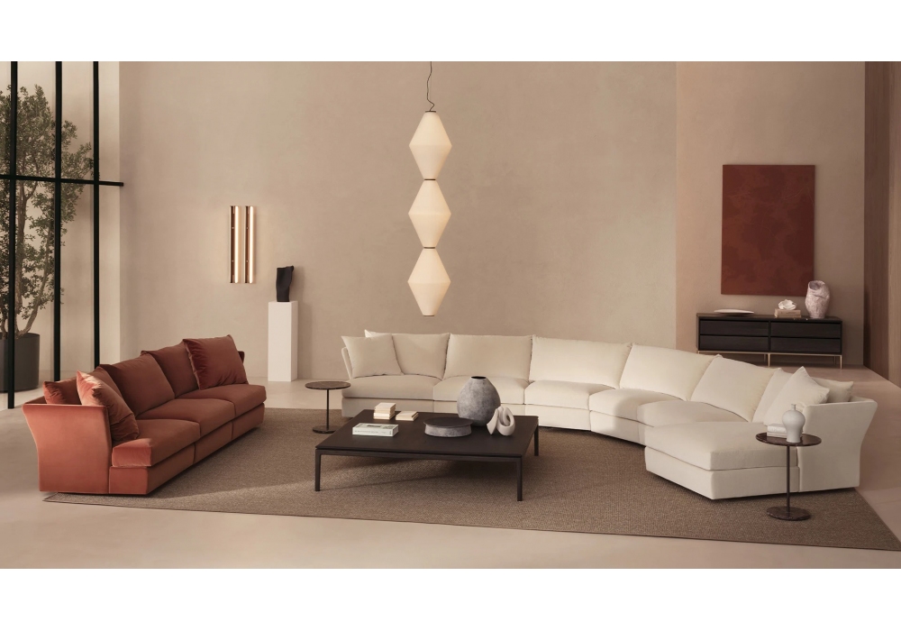 Pillow 20 entworfen von Vico Magistretti für DePadova ist ein modulares Sofa mit Stahl- und Holzstruktur. Die Polsterung besteht aus Polyurethanschaum unterschiedlicher Dichte und Polyesterwatte, gefüttert mit Polyestersamt und Baumwollsegeltuch. Die Kissen sind mit Gänsedaunen gemischt mit Polyesterfasern gepolstert und mit Baumwollleinen gefüttert. Der Bezug ist aus Stoff abnehmbar oder aus Samt fixiert. Pillow 20 ist in verschiedenen Modellen und Ausführungen erhältlich.