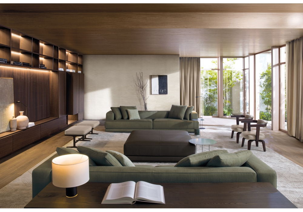 Augusto von Vincent Van Duysen für Molteni&C entworfen, ist ein modulares Sofa mit Strukturpolsterung aus hochbelastbarem Polyurethanschaum variabler Dichte und Futter aus gekoppeltem Samt. Sockel aus lackiertem Aluminium, Bodenstütze aus Aluminium mit rutschfesten Kunststoffspitzen. Polsterung aus Stoff oder Leder. Stoffpolsterung mit Ripsband in den angegebenen Farben, Lederpolsterung im gleichen Finish.