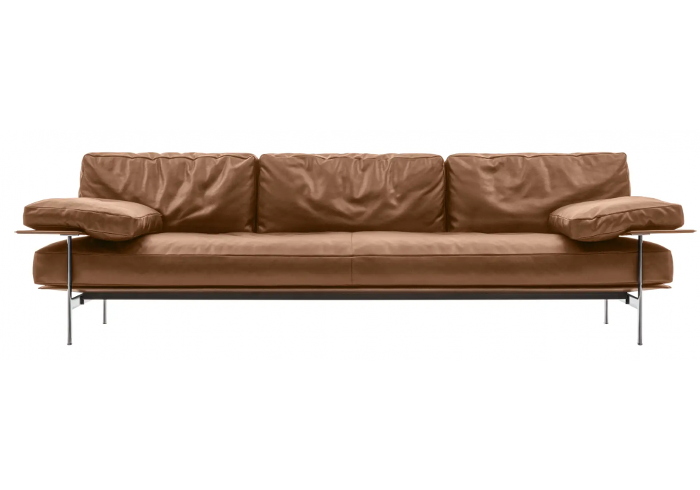 Diesis, von Antonio Citterio & Paolo Nava für B&B Italia entworfen, ist ein Sofa mit einer Tragstruktur aus Blech und Stahlprofilen mit Polyurethanstützen, die mit Leder bezogen sind. Die Polsterung besteht aus Polyurethan mit unterschiedlicher Dichte und viskoelastischem Memory Foam-Polyurethan mit Polyesterfaserfutter. Die Polsterung besteht aus Stoff oder Leder. Füße und Tragstruktur bestehen aus Aluminiumguss und Stahlrohren. Strukturpolsterung aus verschiedenen Ledern.