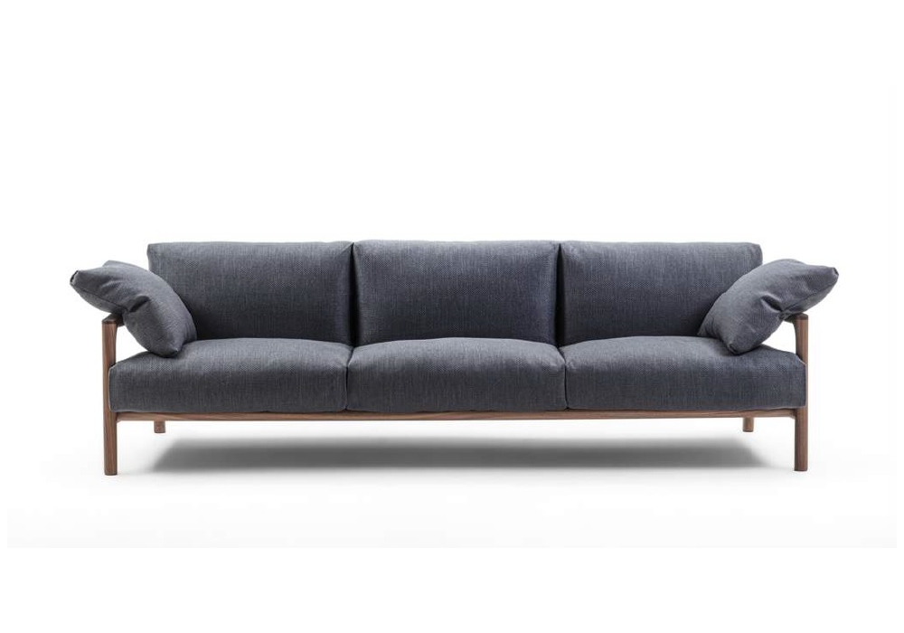 Vera von Gabriele & Oscar Buratti für Porada entworfen, ist ein Sofa oder Sofa mit Chaiselongue aus massivem Canaletta-Walnussholz, Rückenlehne aus Cuoietto und Polsterung aus Stoff oder Leder (abnehmbar). Zwei Armlehnenkissen aus Federn immer im Lieferumfang enthalten. Erhältlich in verschiedenen Ausführungen und Ausführungen.