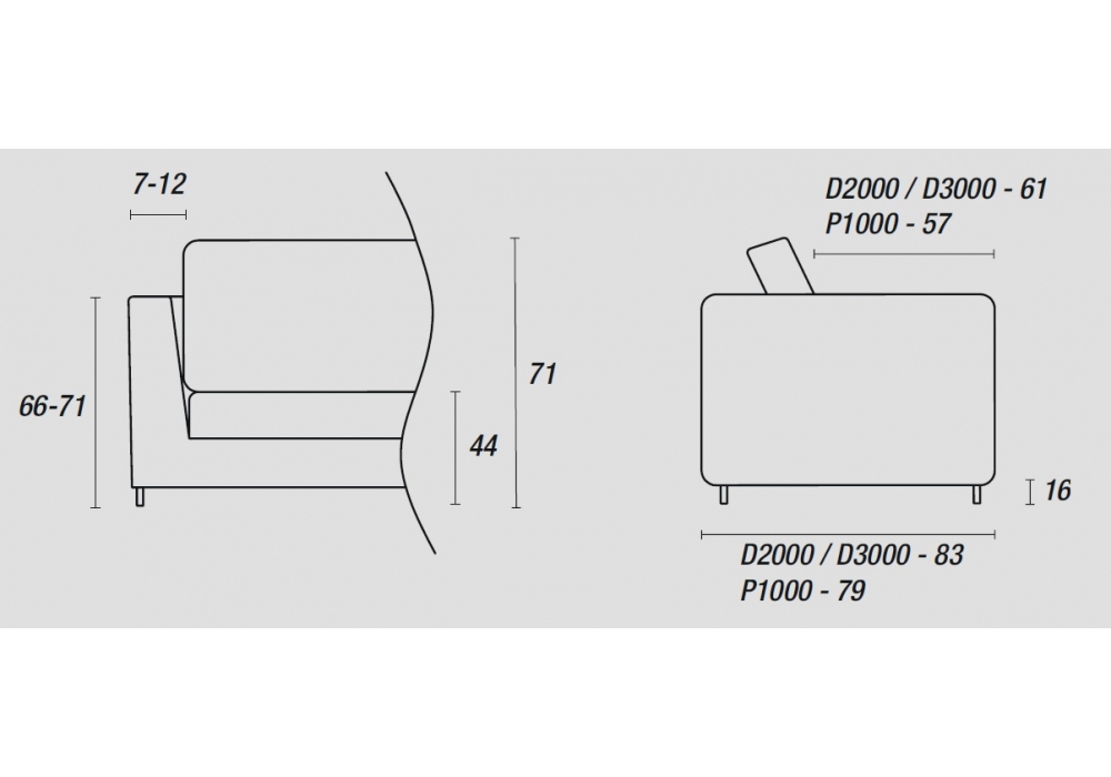 | Abmessungen | • 174 x 83 x H 71 cm; • 202 x 83 x H 71 cm |