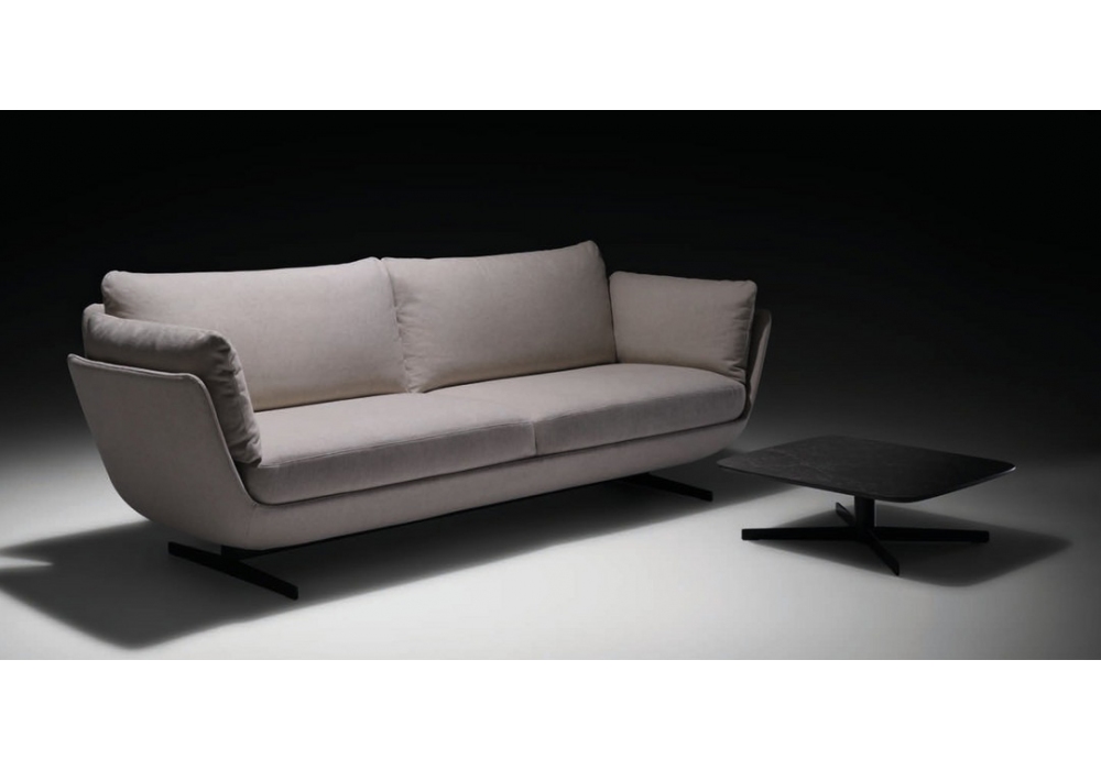 Biggie Mono von Luca Nichetto für Twils entworfen ist ein Sofa mit Struktur aus Baydur®-Polyurethan bezogen mit harzbeschichtetem Dibra. Die Sitzkissen sind aus superweichem differenziertem Gummi, während die Rücken- und Armlehnenkissen aus einer Mischung aus Gänsedaunen und Polyester bestehen. Die mehrschichtige Platte ist mit gekoppeltem Samt bezogen. Die Basis mit den Füßen besteht aus mattschwarz lackiertem Metall. Biggie Mono ist in verschiedenen Bezugsausführungen und Modellen erhältlich.
