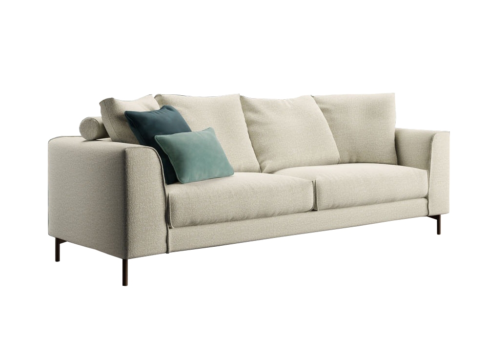 Nathan von R&D Twils für Twils entworfen ist ein Sofa mit Sitzfläche aus Sperrholz massiver Pappel und Tanne mit gekreuzten elastischen Gurten. Die Sitz- und Rückenkissen sind aus Polyurethan mit Stoff- oder Lederbezug. Die Armlehnen sind aus Holzfaser mit Polsterung aus Polyurethan und gepresster Polyesterfaser. Die weichen Rückenkissen sind aus einer Mischung aus Gänsedaunen und Silikonfaser mit Baumwollgewebe. Die Platten und die Basisstruktur sind aus mattschwarz oder braunbronze lackiertem Metall. Nathan ist in verschiedenen Modellen und Ausführungen erhältlich.