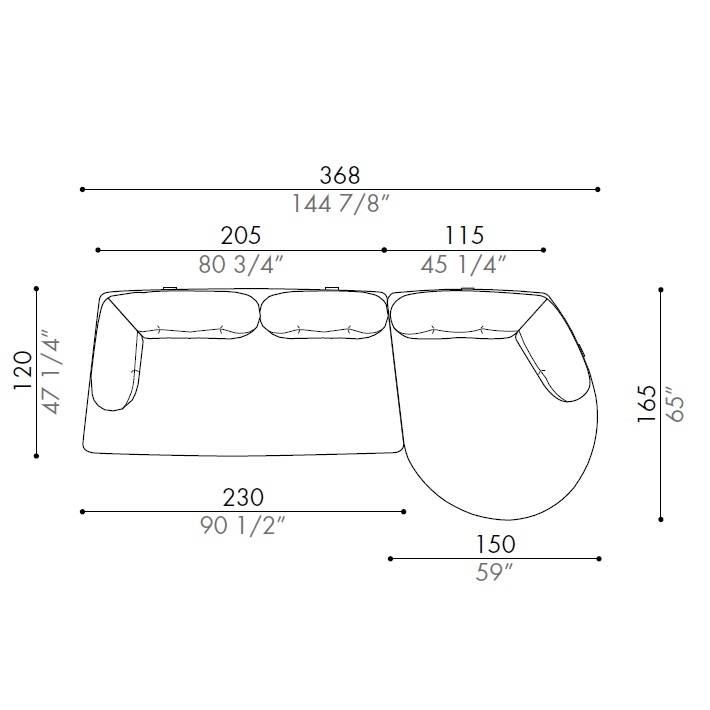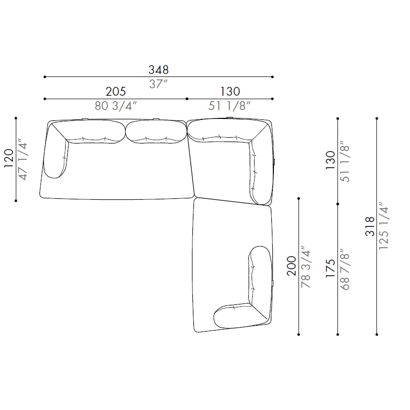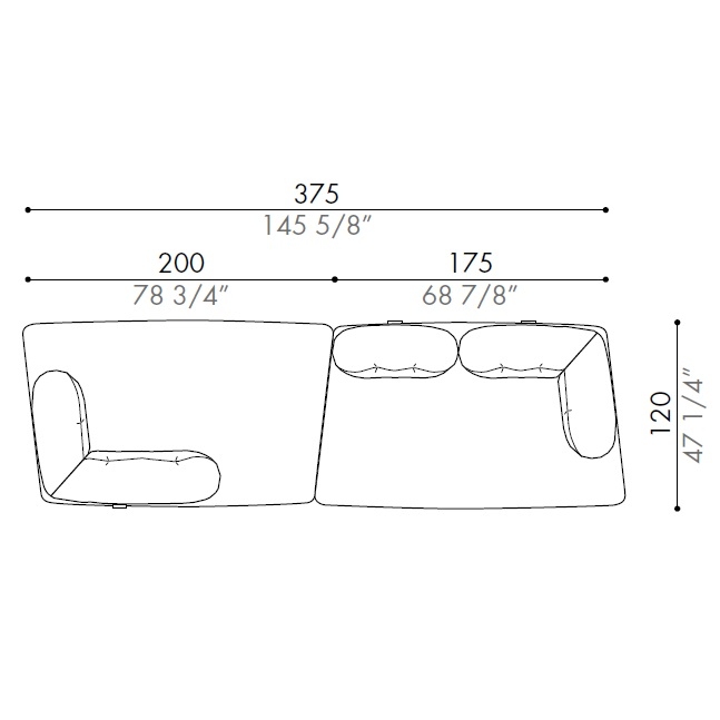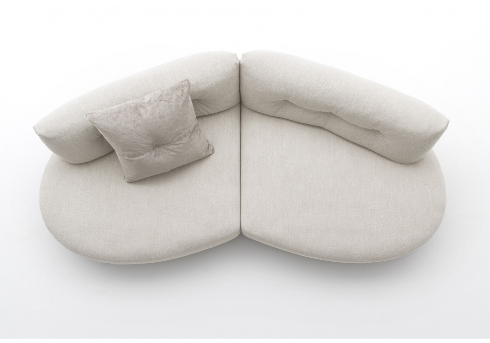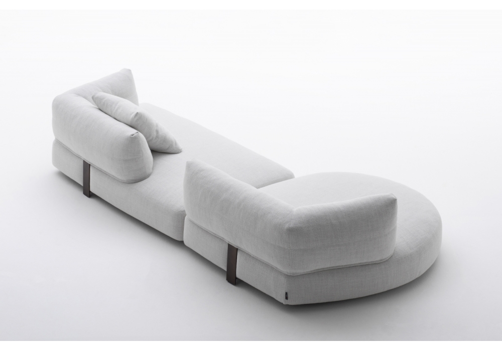 Ethìa von Jai Jalan für Désirée entworfen, ist ein modulares Sofa mit einer Metallstruktur zur Befestigung der Rückenlehnen aus bronzefarben lackiertem Stahl, einer Polsterung aus Polyurethanschaum und einem vollständig abnehmbaren Bezug aus Stoff oder Leder.
