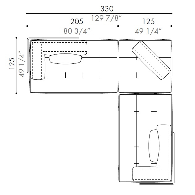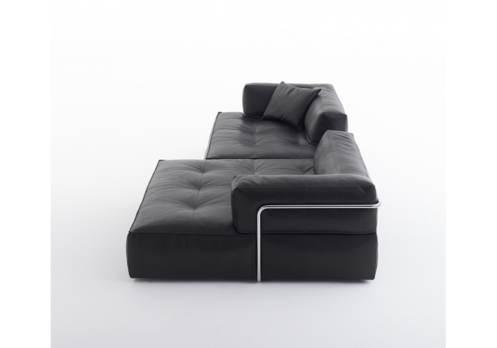 Melvil von Marc Sadler für Désirée entworfen, ist ein modulares Sofa mit einer Holzstruktur und glänzenden verchromten Metallrohren, einer Polsterung aus Polyurethanschaum und einem komplett abnehmbaren Bezug aus Stoff oder Leder.