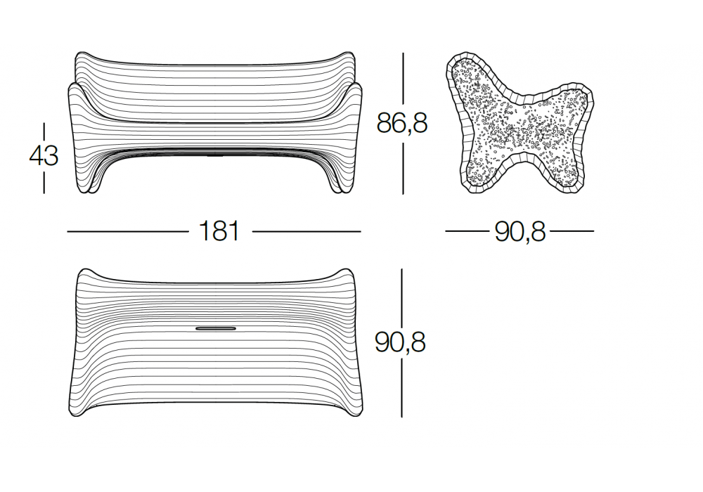 In-Side von Thomas Heatherwick für Magis entworfen, ist ein Dreisitzer-Sofa aus Polyethylen, mehrfarbige Seitenteile. Verfügbar in verschiedenen Ausführungen.
