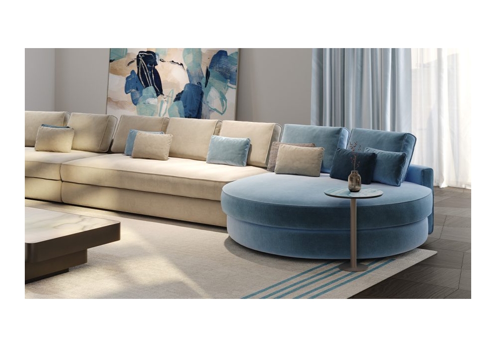 Adone Sofa von Emanuele Missaglia für Reflex Angelo entworfen, ist ein lineares oder modulares Sofa mit Holzstruktur, gepolstert mit Polyurethanschaum. Zusätzlicher Schutzbezug aus Verbundstoff. Sitz- und Rückenkissen aus Gänsedaunen mit Polyurethaneinlage. Bezug aus Leder oder Stoff erhältlich.