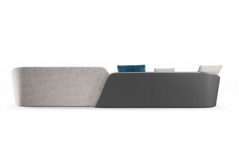 Stratum von Pininfarina für Reflex Angelo entworfen, ist ein Sofa mit innerer Holzstruktur mit Polsterung aus Polyurethanschaum und Sitzkissen aus unverformbarem Polyurethan. Bezug aus Stoff oder Leder erhältlich. Charakteristisch ist die Komposition auf verschiedenen Ebenen, die zwei unterschiedliche Sitztiefen bieten und so gleichzeitig Komfort und Entspannung garantieren. Die Verwendung unterschiedlicher Materialien hebt die Stratigraphie hervor und verleiht dem Sofa gleichzeitig einen einzigartigen und unverwechselbaren Charakter.