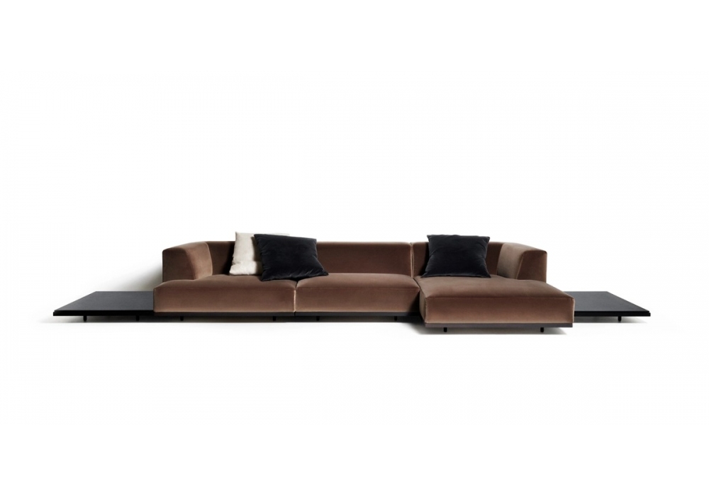 Alberese Wood von Piero Lissoni für DePadova entworfen ist ein Sofa mit einer Holztragstruktur und einer furnierten MDF-Basis mit dunkler Eichenkante. Die Füße sind aus dunklem massivem Eschenholz. Die Polsterung besteht aus Polyurethanschaum unterschiedlicher Dichte und Polyesterwatte, die mit Polyestersamt ausgekleidet ist und einen abnehmbaren Stoff- oder festen Lederbezug hat. Die Oberseite kann aus Holz oder Marmor mit wasserabweisender Behandlung oder aus mattem Polyester bestehen. Alberese Wood ist in verschiedenen Modellen und Ausführungen erhältlich.