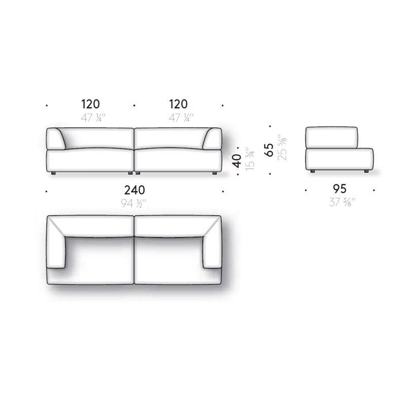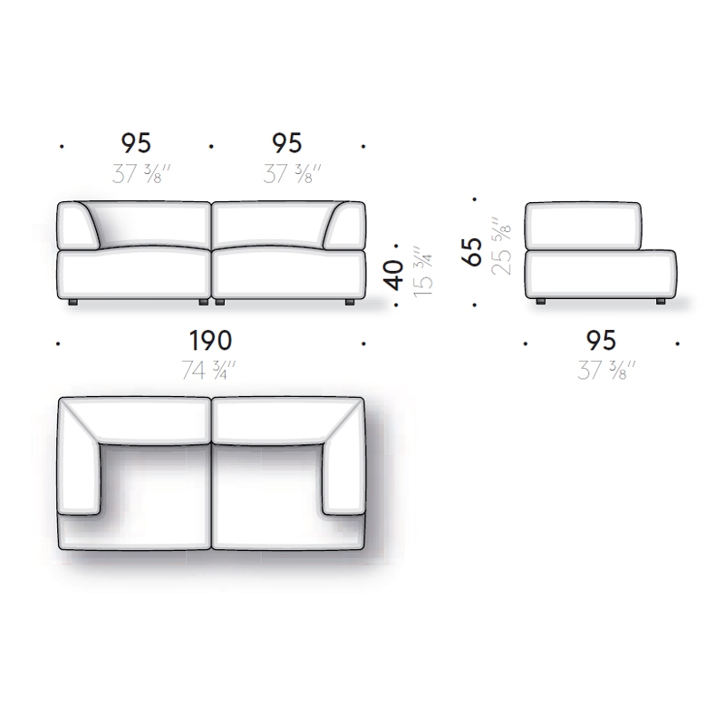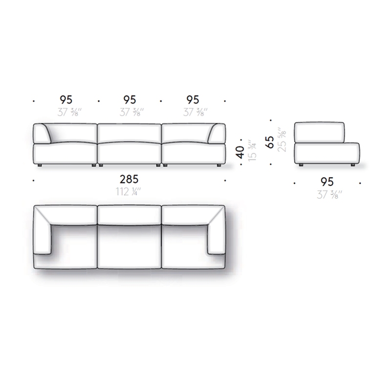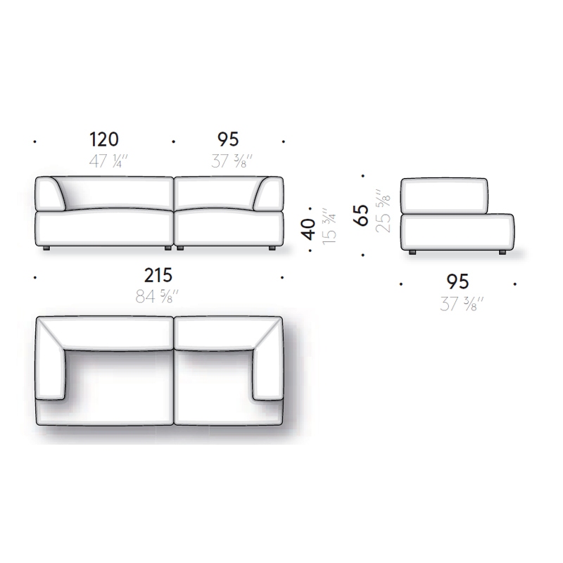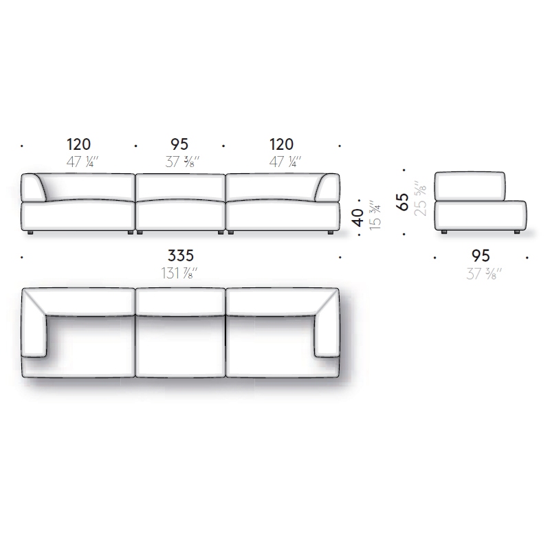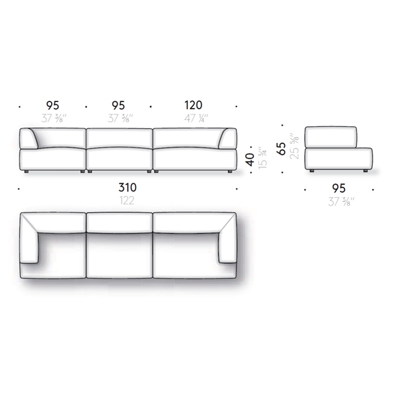 | Abmessungen | 190 x 95 x H 65 cm; 215 x 95 x H 65 cm; 240 x 95 x H 65 cm; 285 x 95 x H 65 cm; 310 x 95 x H 65 cm; 335 x 95 x H 65 cm. |