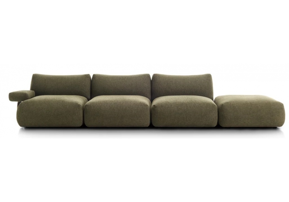 Goom von Jean Marie Massaud für MDF Italia entworfen, ist ein modulares Sofa mit verschiedenen Stoffbezügen. Es können ein oder zwei Armlehnen mit matt lackierter Struktur oder in Holzoptik hinzugefügt werden.