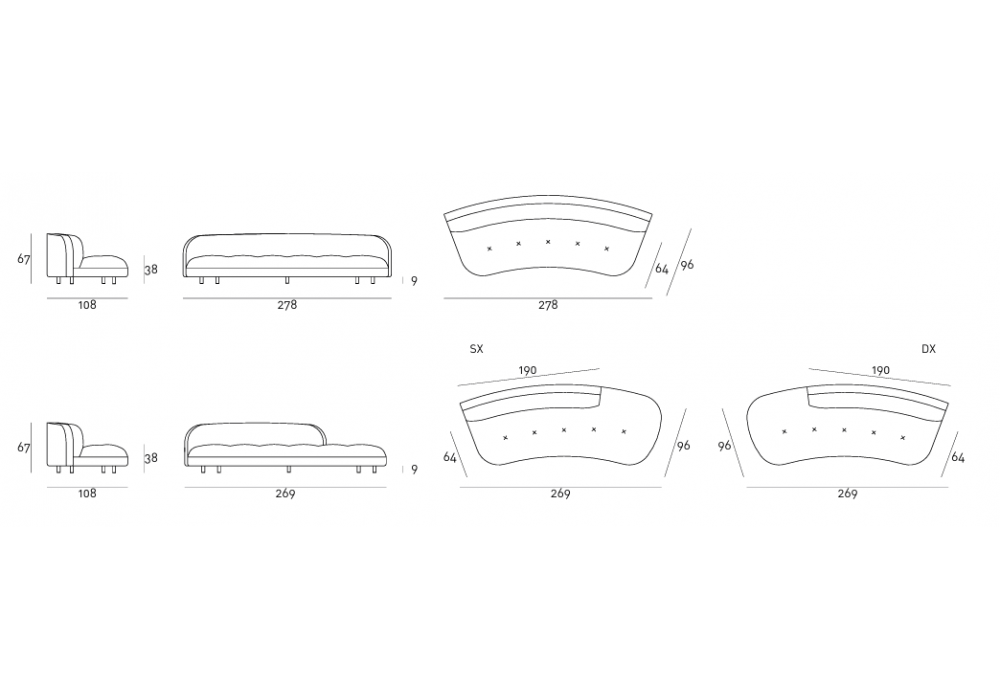 | Abmessungen | 278 x 108 x H 67 cm; 269 x 108 x H 67 cm. |